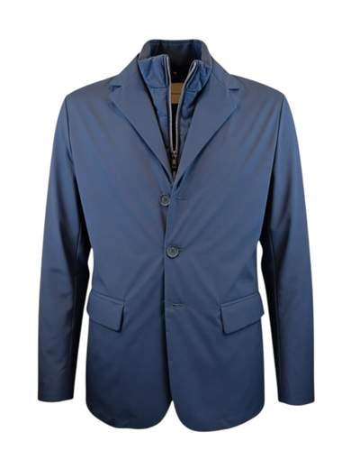 Giacca con pettorina staccabile dalla vestibilità slim. Il capo presenta tasche tagliate con pattina e tasche interne, perfetto anche come giubbotto in quanto è imbottito. Giacca autunnale e per inverni miti.