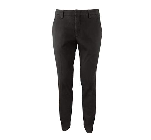 Pantalone realizzato in gabardina di cotone calda e morbida al tatto. Lunghezza gambe sopra scarpe, altezza vita regolare con chiusura zip, gancio e bottone. Vestibilità slim.