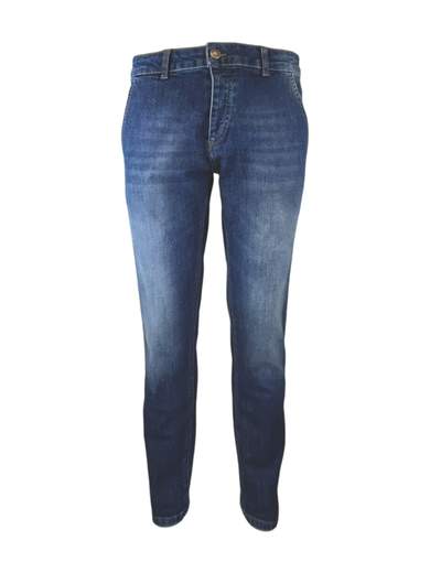 Pantalone bro ship modello tokio, realizzato in tessuto denim stone washed dalla vestibilità slim. Punto vita con chiusura zip e bottone. Lunghezza gambe sopra scarpe.