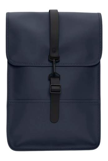 Zaino iconico della rains, completamente antipioggia. Tessuto PU impermeabile con finitura effetto pelle - Patta con chiusura magnetica a scatto - Scomparto principale singolo - Tasca posteriore esterna con zip - Tasca interna con zip - Tasca piatta adatta per laptop da 13" - Spallacci regolabili - Manico in nastro.