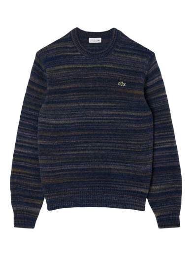 Nuova fantasia per Lacoste in questa maglia girocollo. Jersey di alpaca, vestibilità classica, maniche comode, Maglia finezza 5 di media pesantezza, Effetto ombré unico su ogni pezzo, Coccodrillo ricamato sul petto.