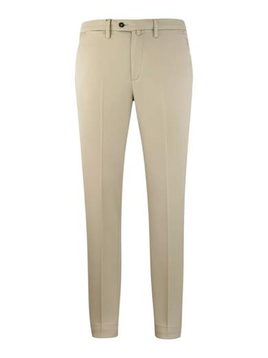 Pantalone molto leggero, elasticizzato e traspirante in misto lyocell. Vestibilità slim, altezza vita intermedia con chiusura zip e bottone. Lunghezza gambe sopra scarpe.