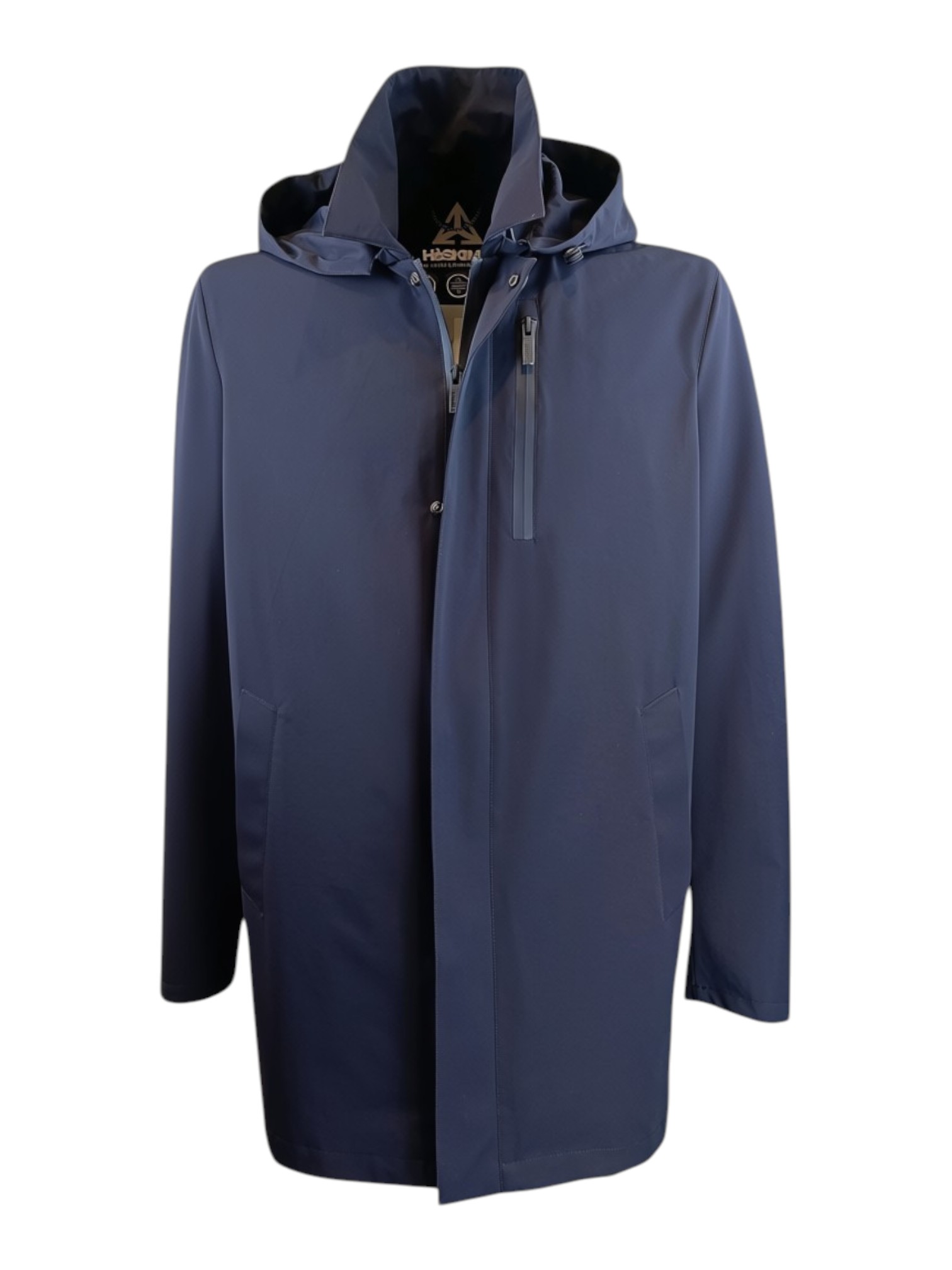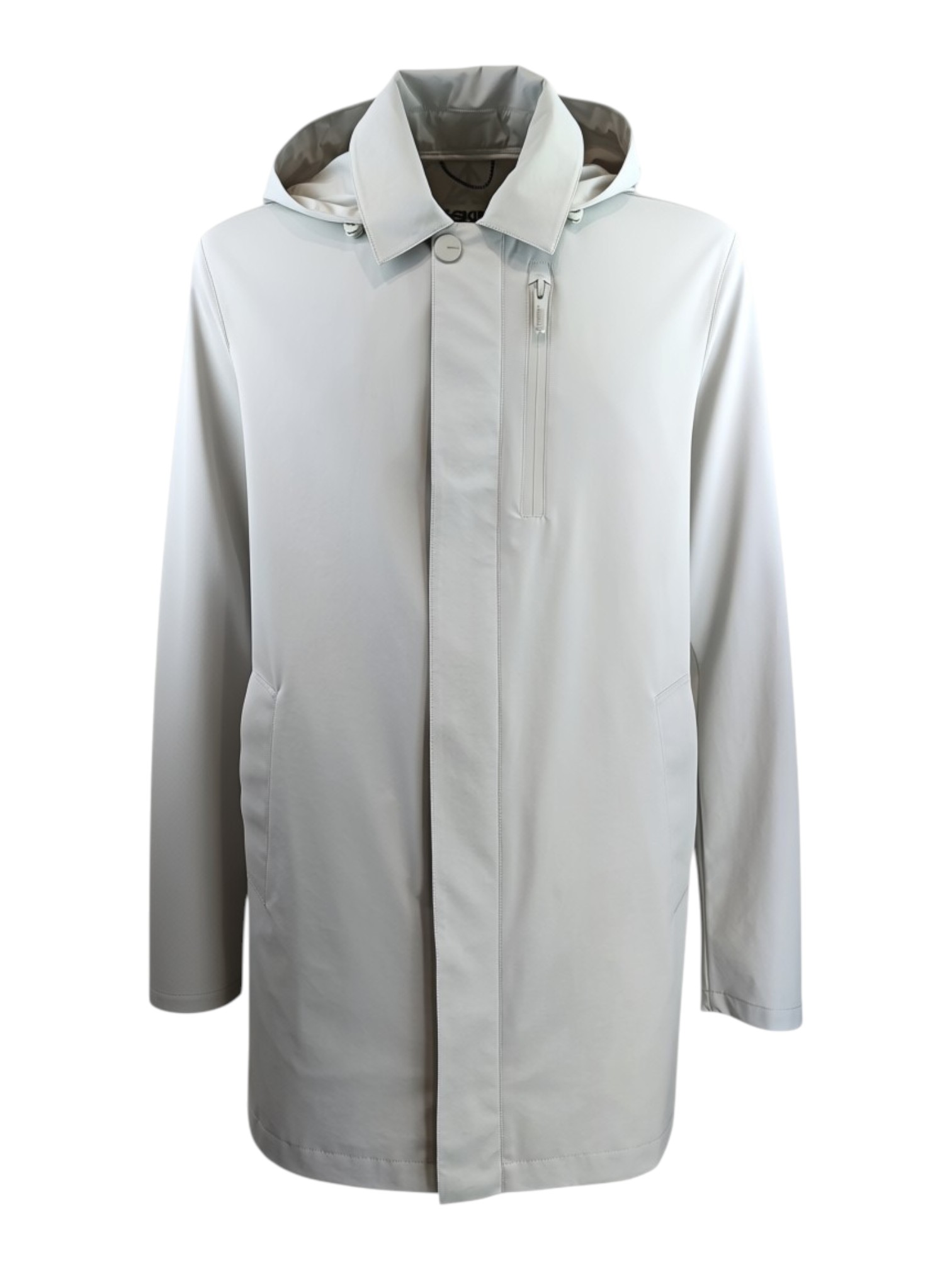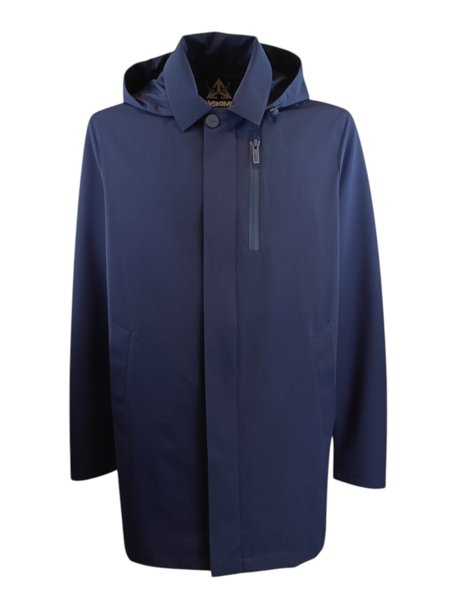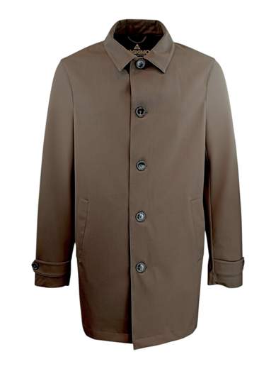 Trench completamente impermeabile e traspirante in lana sfoderato; la caratteristica di questo capo è il fatto che non si stropiccia ed è molto performante, cuciture termonastrate. Vestibilità regolare. Tasche interne.