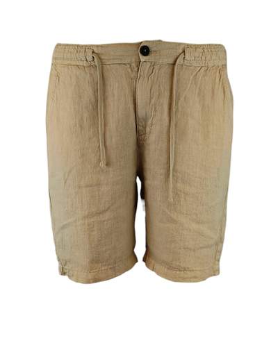 Bermuda realizzato in puro lino lavato vintage dalla vestibilità regolare, punto vita regolabile con laccio.