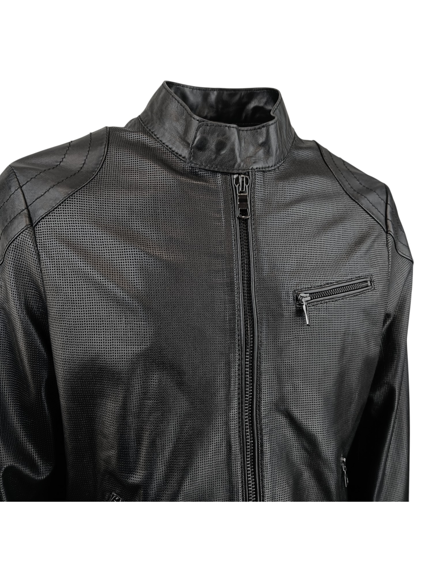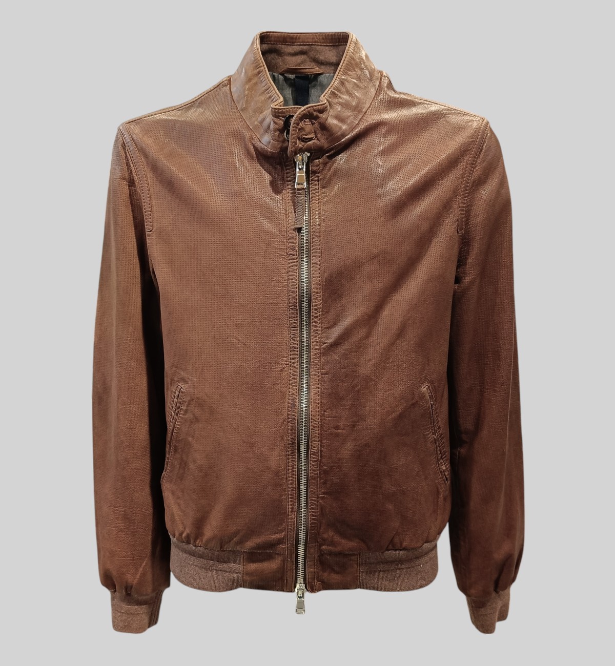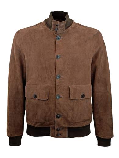Giubbino sfoderato ed elasticizzato in pelle suede con bottoni e polsi, collo in maglia. Capo leggero ed impacchettabile per portarlo con se. Vestibilità regolare.