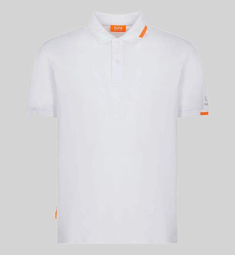 Polo iconica della SUNS  realizzata in tessuto traspirante e confortevole per un utilizzo quotidiano. Logo reflective sulla manica sinistra. Pinnetta logata Suns sul lato destro. Dettaglio arancione sul colletto e sulla manica sinistra. Vestibilità regolare.